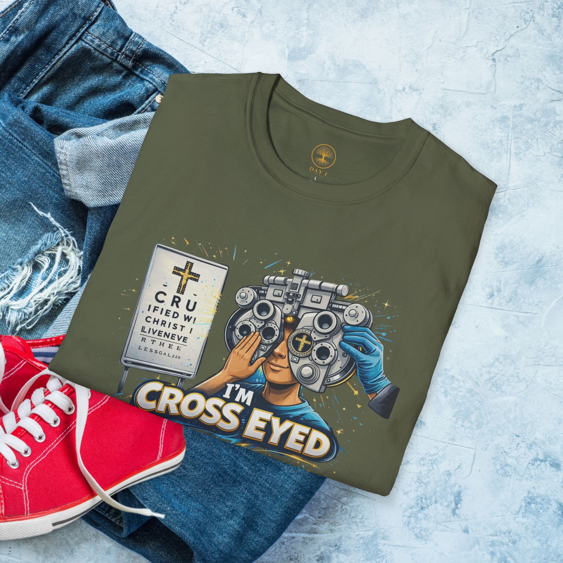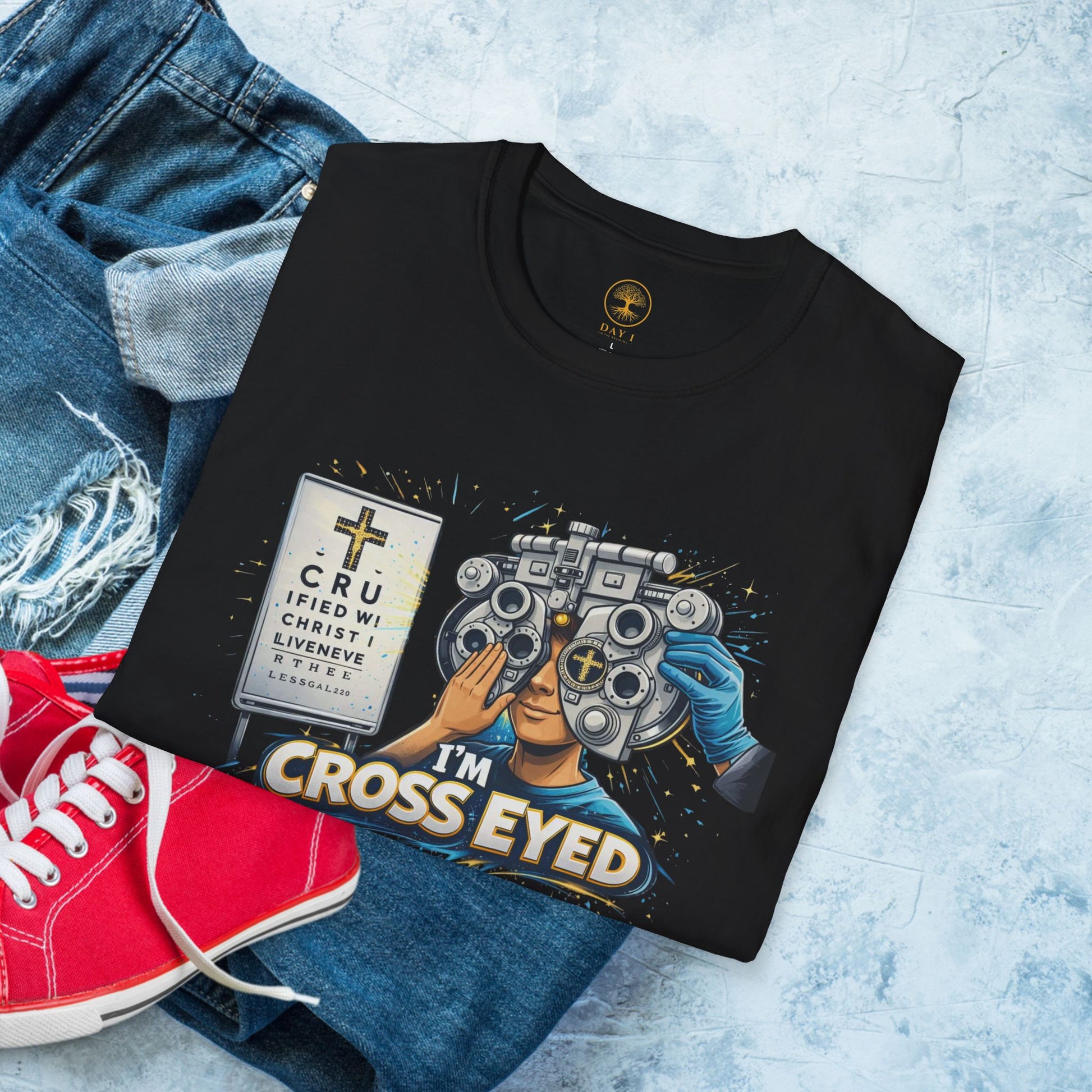 This lightweight crew-neck tee brings a wink of humor to everyday wear. A vintage-style eye exam illustration sits center chest: a patient peering through a phoropter, a classic Snellen chart at the side, and the playful caption “I’m Cross Eyed.” The soft, smooth ring-spun cotton drapes comfortably and prints with crisp detail, so the artwork keeps its character wash after wash. Wear it layered under a jacket for casual errands or solo with jeans when you want to spark a grin from friends and strangers alike. The clean lines and neutral background let the art take the stage — a subtle, clever nod to anyone who loves retro medical art, low-key humor, or nostalgic graphic tees.